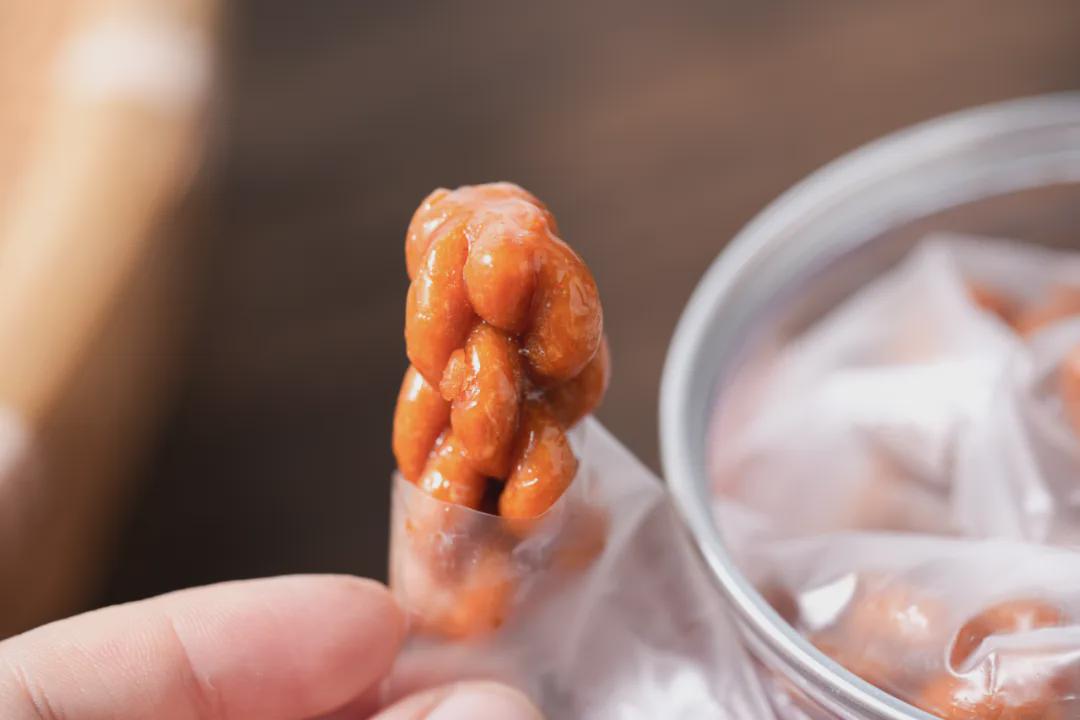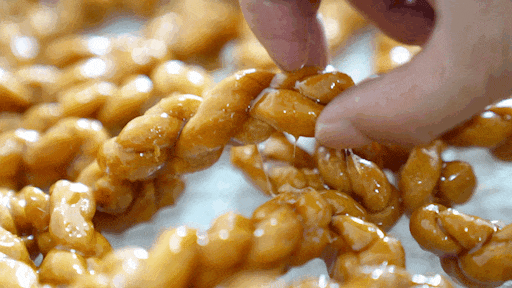 等麻花每一个都均匀地裹上红糖汁,等它冷却了, 一颗甜软脆酥的麻花就好了 。