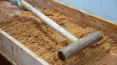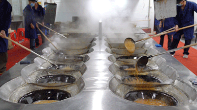 流出来的糖水, 就要放进大锅里去“煎”了 。