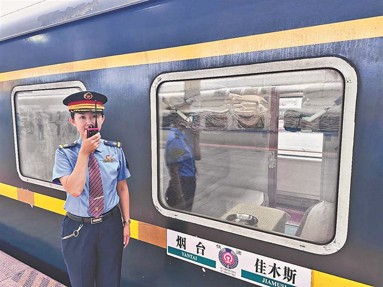记者从哈铁牡丹江客运段了解到,列车长孙飞今年34岁,是中国铁路哈尔滨局集团有限公司牡丹江客运段烟台车队的一名90后列车长。她值乘的K1394次列车是一趟从黑龙江三江平原腹地佳木斯始发,终到“港城”烟台的跨省长途普速旅客列车,单程运行近40小时,途经吉林、辽宁、河北、天津等多个省市。随着暑期旅游旺季的到来,这趟列车的客流明显增加,许多家庭选择乘火车前往烟台度假。